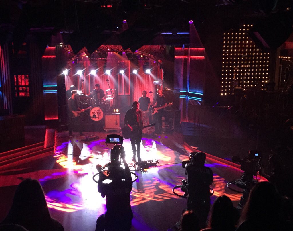 Oh yes. The good people at Вечерний Ургант (Evening Urgant), Russia’s answer to Kimmel/Fallon/Colbert etc, have invited us to rock up and blast through “Looking Too Closely” as the end credits roll, but with each anxious phonecall to our liaison Almira they’re probably beginning to wish they hadn’t bothered. A one-hour delay becomes 90 minutes, becomes two hours, becomes two and a half. It’s rush hour, and Moscow is one hell of a big place. As a Londoner and as someone who has visited Tokyo, I have respect for very big cities. I eye the little blue dot on Google Maps, simultaneously marvelling and seething at quite how slowly it’s moving, even when our fur-hatted driver manages to floor it along a relatively empty road for a few moments. Almira receives another frantic call. Due to lack of time, can we cut down to one drummer? I glance at our second drummer Nicky and we glumly nod our consent. Guy our bassist grins at me, as only he can grin. “The rest of us can decide which drummer we use, right?”
