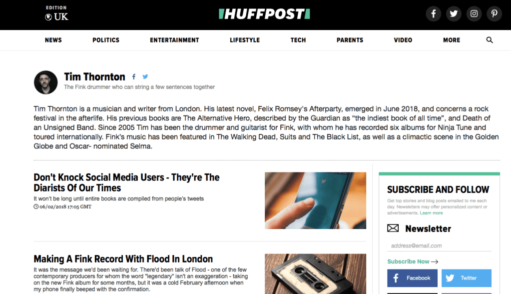 I’ve written many, many blogs for the Huffington Post. So many that they deserve their own section. Recently they’ve become much harder to publish, but I’m pretty proud of the works thus far. Have a browse on the Huffpost site, while they’re still there… or look at my archived versions underneath.